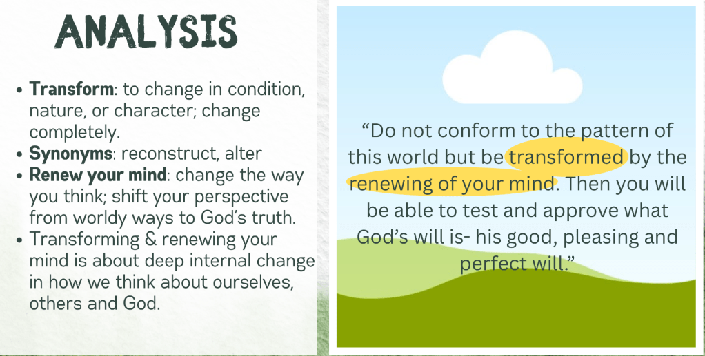 We then conducted the F.I.R.E. method on Romans 12:2.